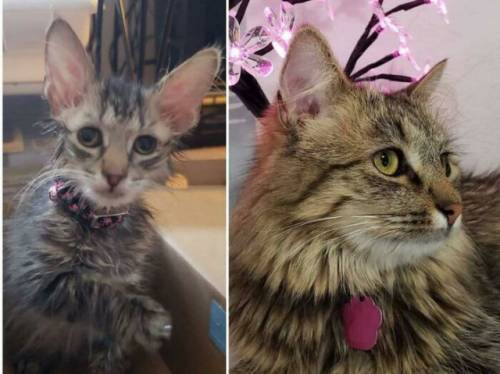 1. «Я гладила кошенят у парку, і один спробував забратися мені на ногу. На другому фото – вона зараз»